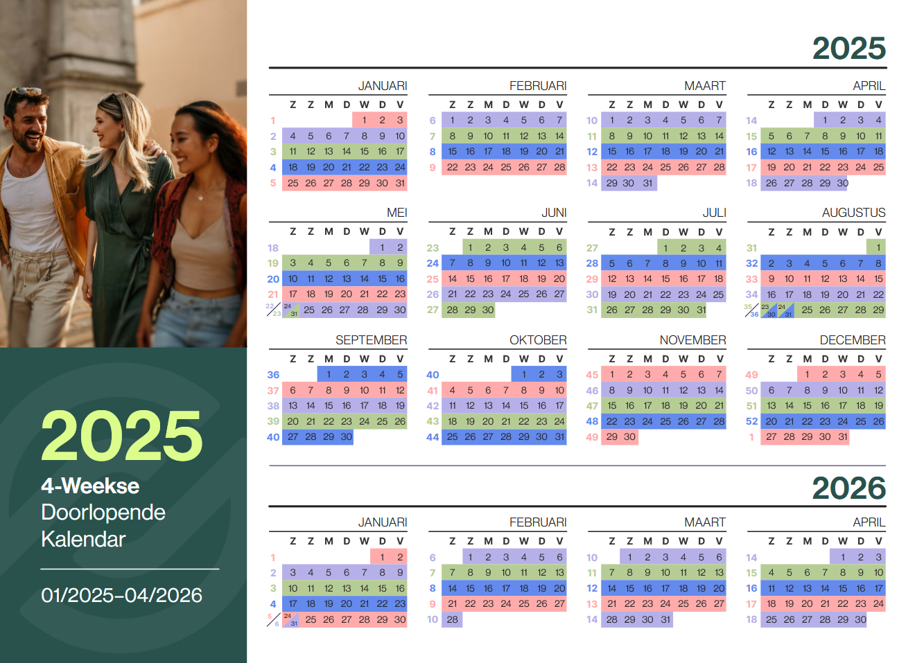 Dit is de Rolling Kalender voor 2025 die je kunt gebruiken om het beste moment voor je 4-weekse Abonnement bestelling te bepalen.